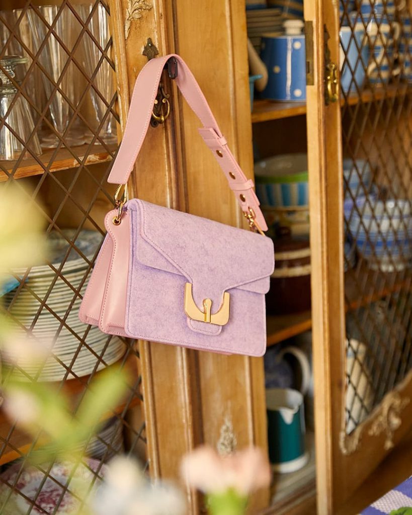 KITSCH-EN: because the kitchen is the heart of your home. At Coccinelle there’s no exception. The attention to detail is hypnotic: tiny flowers, needlepoint, cans and grandmother’s china make up the recipe for everyday magic. Imagine if the tea ceremony were led by Bewitched’s blonde superheroine Samantha. From the furry bag to chain shoulder bags, everything is pastel, gold, embroidery and adornment.