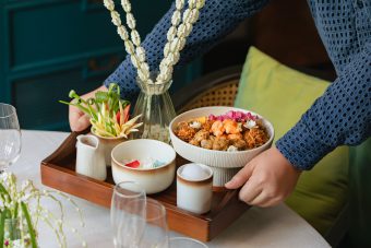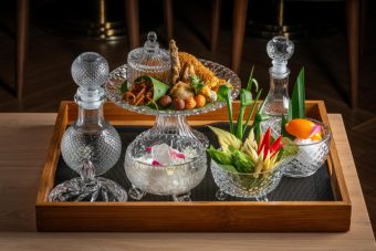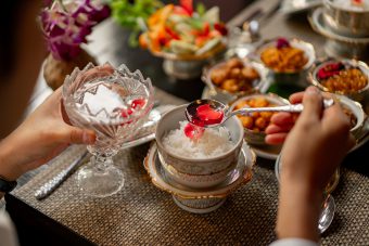 At Benjarong, the award-winning Thai restaurant at Baan Dusit Thani, the heat is met with the elegant royal Khao Chae within the century-old Sala Daeng House, framed by a tranquil garden. This experience begins with ‘Watermelon with dried fish’ as a juicy, savoury-sweet start, before seamlessly transitioning to the most anticipated Khao Chae—featuring chilled premium organic jasmine rice from Surin Province served with an elegant selection of traditional accompaniments. Highlights include kapi balls, stuffed shallots, stuffed green chilli wrapped in fine egg net, sweetened shredded beef or pork, sweet stir-fried preserved radish, sweet stir-fried fish prepared following a traditional Surat Thani recipe, deep-fried salted egg yolk prepared in the traditional Chaiya style, and minced pork with salted fish, alongside fresh organic vegetables and Som Chun, a fragrant traditional Thai citrus dessert that lingers like a cool breeze.