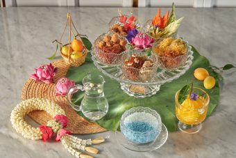 JW Marriott Hotel Bangkok offers a sophisticated sanctuary in the form of Thailand’s most poetic summer tradition. This year, the Bangkok Baking Company (BBCO) serves as the backdrop for a meticulous revival of Khao Chae, curated by Chef Tang Tananton Bunnag. Chef Tang has curated a suite of nine distinct condiments, each demanding a different technique to achieve the perfect balance of savory, sweet, and texture. To round out the ritual, the meal concludes with Som Choon—a bright, sweet-and-sour medley of summer fruits—and a refreshing butterfly pea flower tea with lime, mirroring the cooling properties of the main dish.
