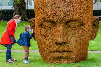 Manolo Valdés’ Reina Mariana is just a stone’s throw away from Bond Street. As one of Spain’s most famous living artists, Manolo Valdés finds inspiration from old masterpieces by the likes of Velázquez, Rembrandt or Goya, using them as a pretext for creating a new aesthetic. His work possesses the quality of timelessness, creating connections between the past and present, the old and the new. In Reina Mariana, Valdés re-contextualises Diego Velázquez’s Queen Mariana (1652-1653) – a highly recognisable portrait of the second wife of Felipe IV. The change in morphology and meaning that occurs throughout Valdés’ representations of Velázquez’s image can be seen in this work.