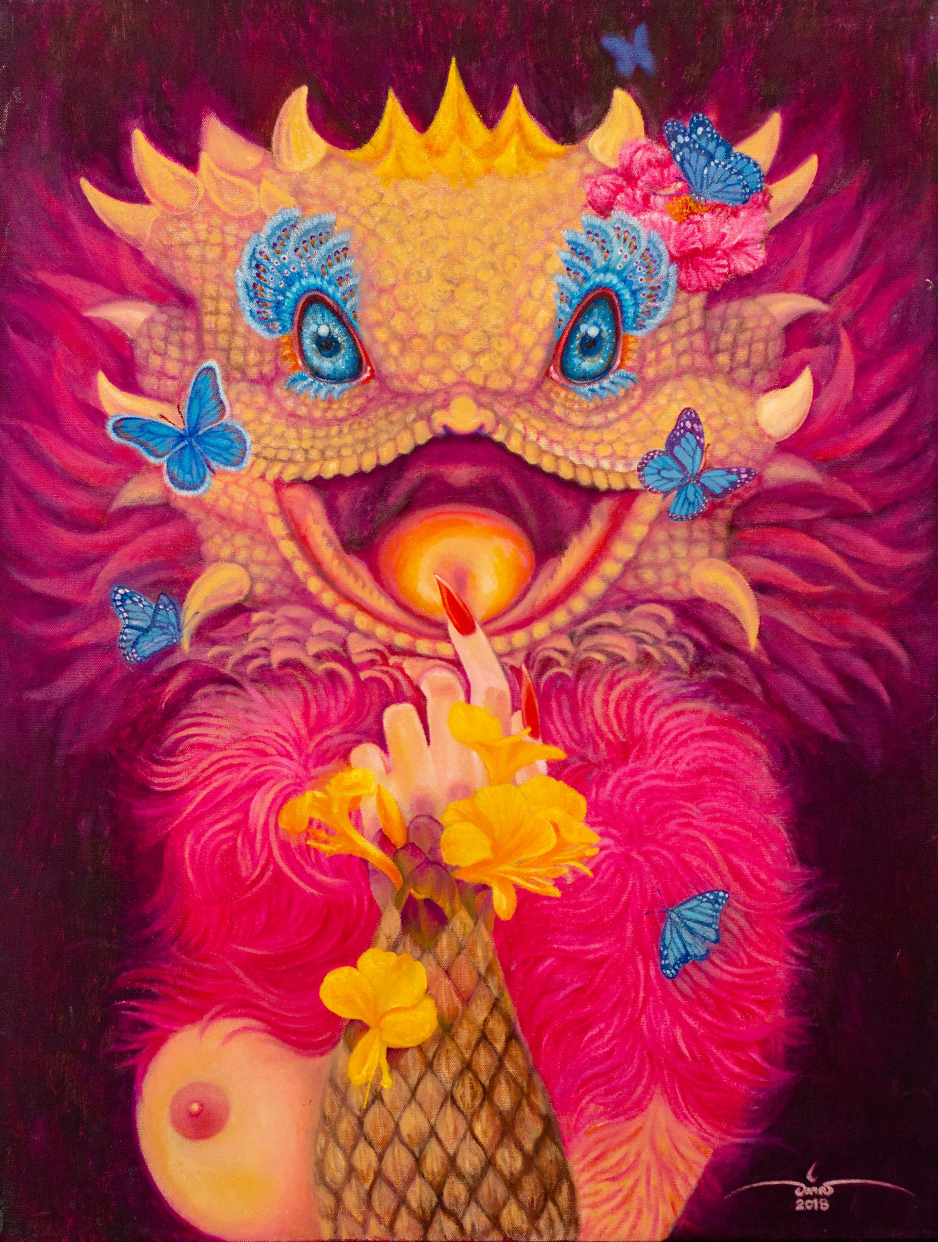 Ongkorn Sinlapangkul is also featured in this zone, with the artist’s special interpretation of the colours and sights of Phuket in two fantastical paintings of a seahorse and woman with a dragon mask.